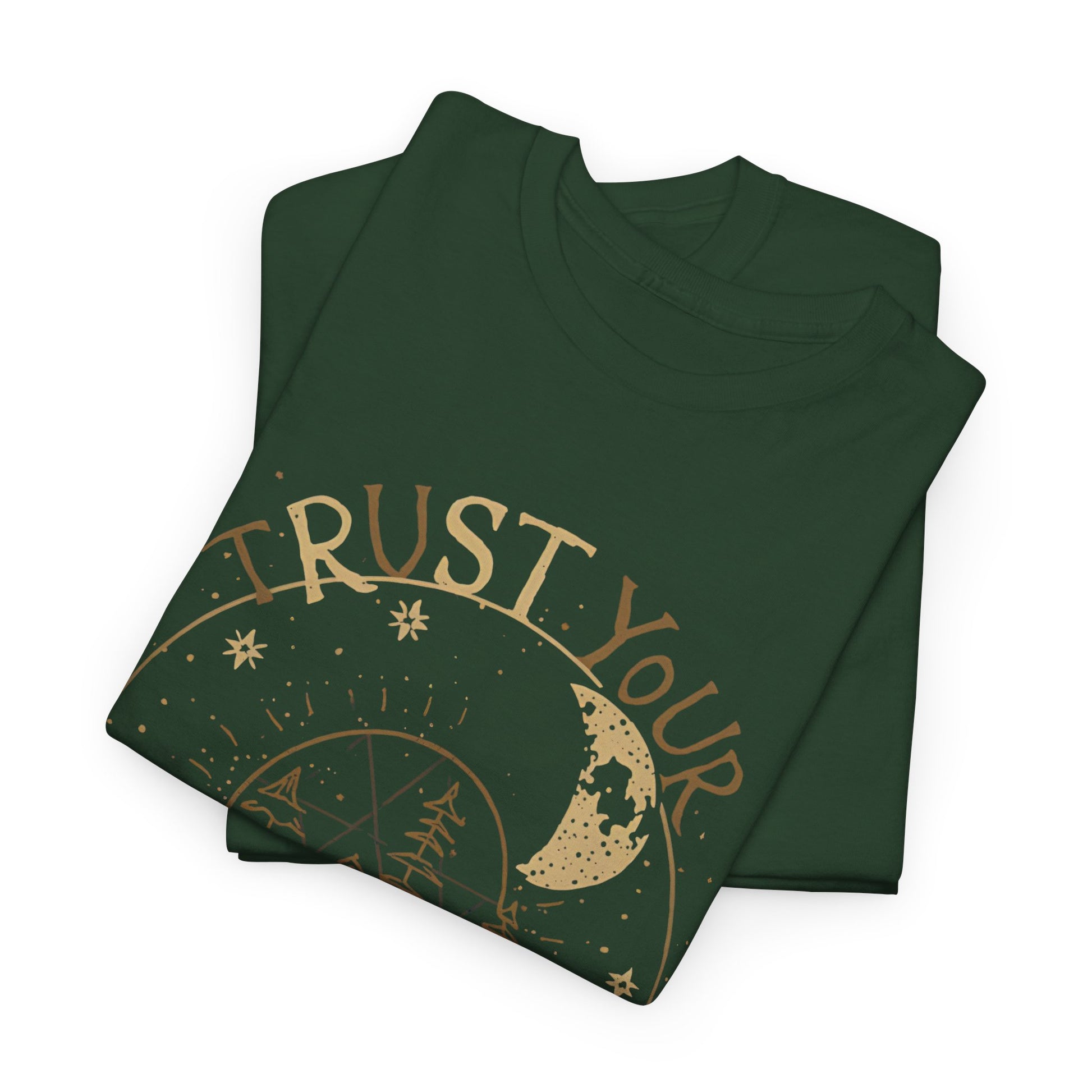 Let your inner calm and intuition guide you with the Trust Your Energy tee. The design captures a peaceful scene of nature beneath the moonlight — a reminder to stay grounded and follow your own rhythm. Subtle celestial details add a spiritual touch, creating a piece that feels both inspiring and serene.