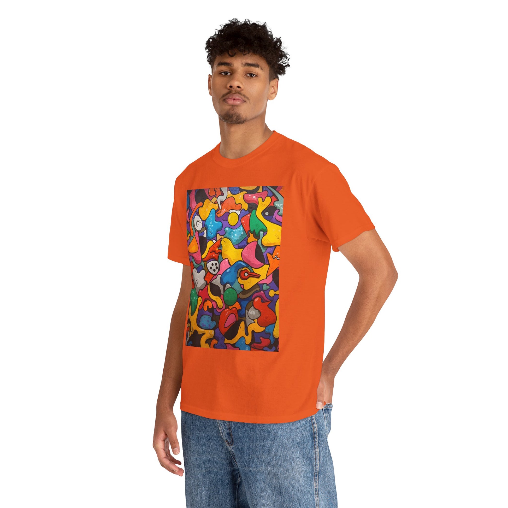 Bring color and creativity into your everyday style with this essential edition of Vibrant Chaos. Printed on the dependable Gildan 5000 heavy cotton tee, this version delivers the same bold abstract energy in a more casual, versatile form. The tightly knit 100% cotton fabric ensures sharp detail and lasting vibrancy, while the seamless body offers a smooth, comfortable fit. Perfect for daily wear, this tee brings art to your wardrobe without sacrificing comfort or durability.